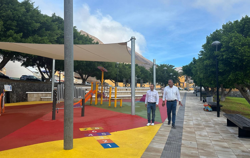 La remodelación del parque infantil José Espino Morales incluye pavimentos renovados, zonas verdes, alumbrado y una pequeña área de restauración