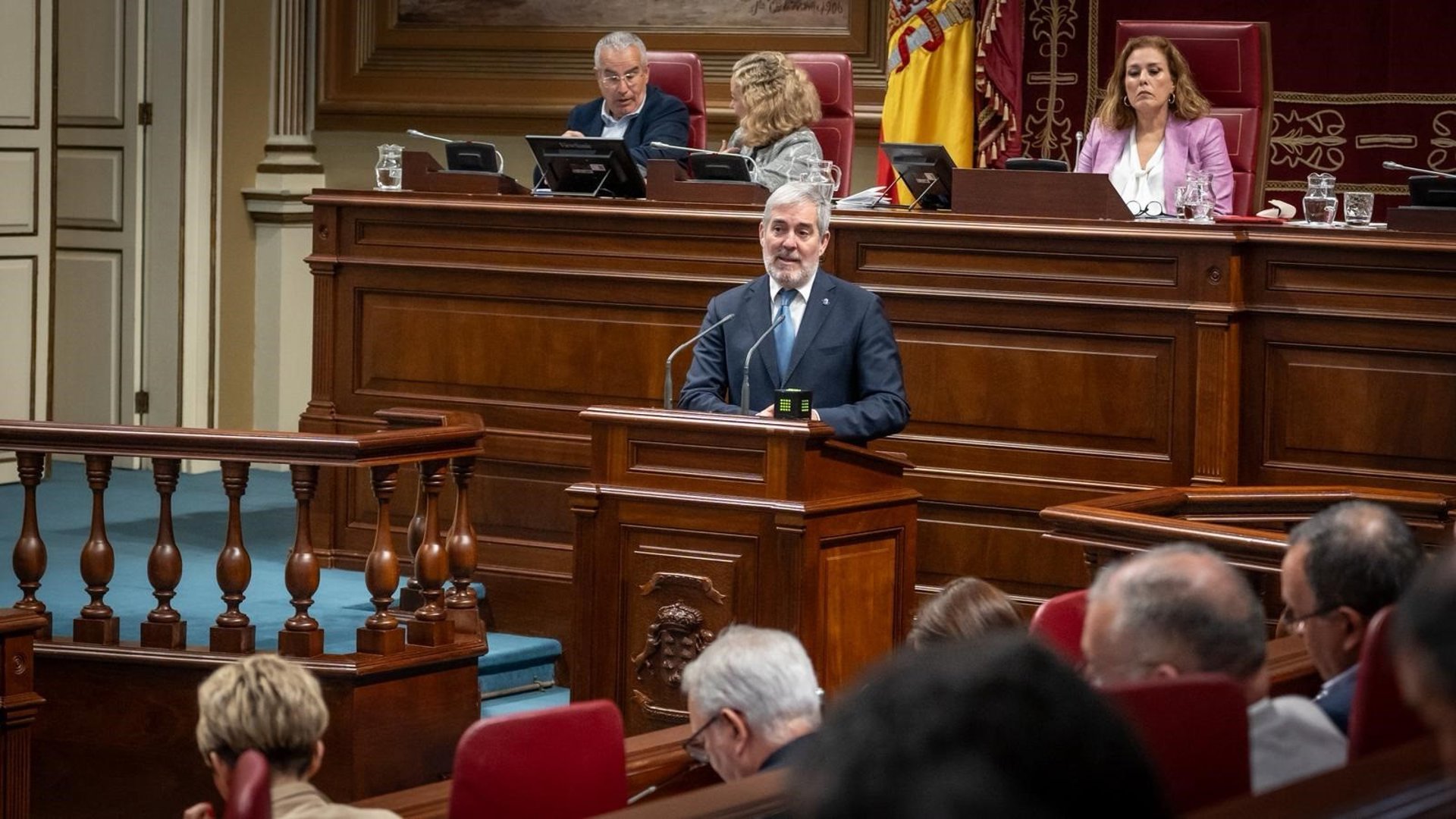 El portavoz del Grupo Socialista, Sebastián Franquis, ha criticado el "teatro político falso" del Gobierno canario pues no tiene competencias para un decreto de corte estatal, y ha reivindicado hablar de asuntos trascendentes para las islas. "Centre su prioridad política en el marco financiero de la UE", ha espetado al presidente canario.