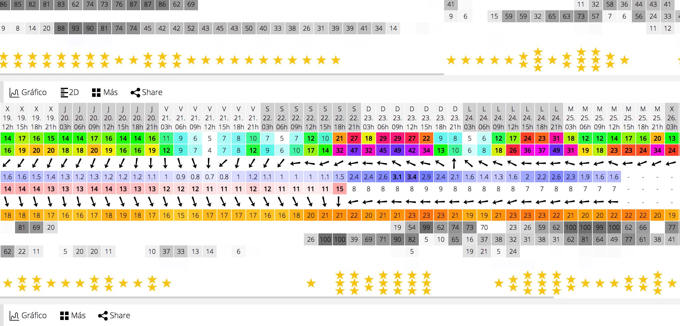 Vientos de componente este- sur este con rachas cercanas a los 40 km h es lo que marca la previsión de las principales servidores meteorológicos, además vendrán acompañados de oleaje que vendrá en esa dirección.